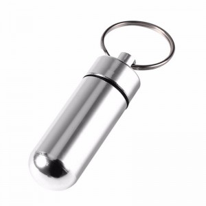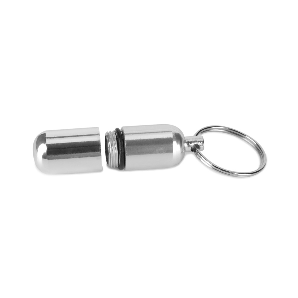Sleutelhanger om een klein aantal pillen in te bewaren voor onderweg of naar het werk. De sleutelhanger opent met schroefdop, en kan aan de sleutelbos gehangen worden.